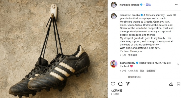 71岁前国足主帅伊万科维奇在社媒发文,正式宣布退休,他表示自己以球员和教练身份驰骋足坛逾六十载,是时候该别足坛了。