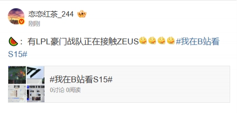 10月31日讯 S15八强赛HLE不敌GEN止步八强,LPL爆料人“恋恋红茶”更博爆料:?有LPL豪门战队正在接触ZEUS。