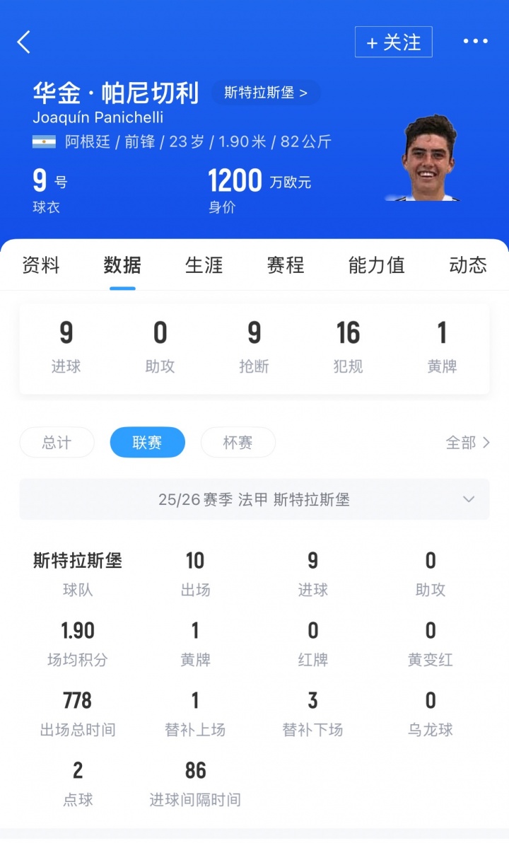 23岁的帕尼切利风格鲜明,进球方式多样。凭借1米9的身高,他既能在争顶中占据优势,也能背对球门完成进攻衔接,如今已成为转会市场的焦点。
