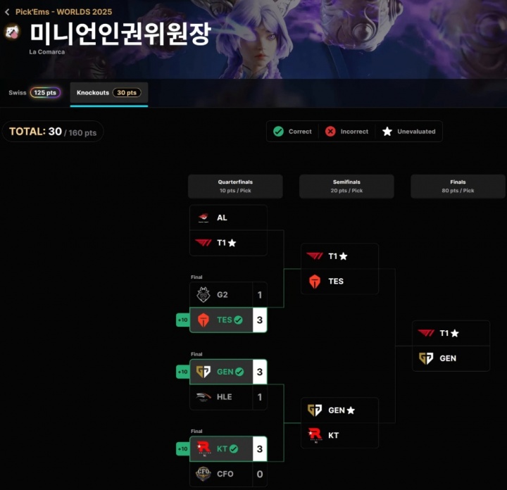 10月31日讯 S15八强淘汰赛,T1 3:2 AL。而在T1获胜后全球仅剩一人有望在拳头官方的预测活动中冲击瑞士轮+淘汰赛全对的成就。