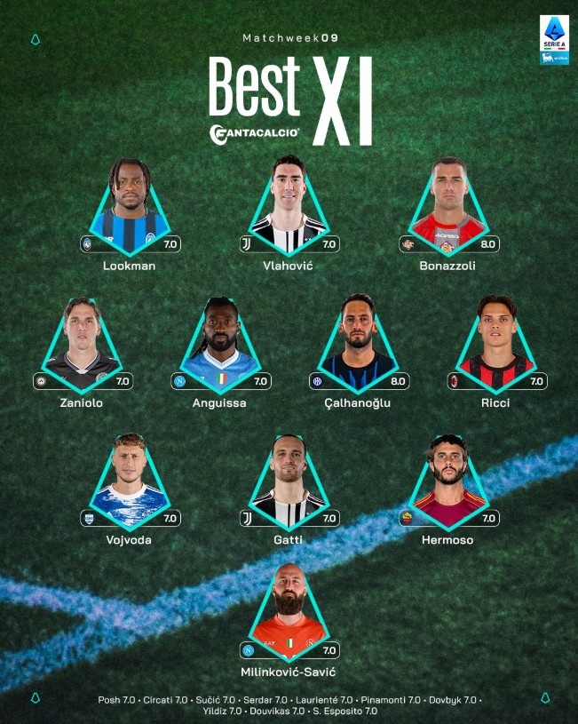 前锋:卢克曼(亚特兰大)、弗拉霍维奇(尤文)、博纳佐利(克雷莫内塞)