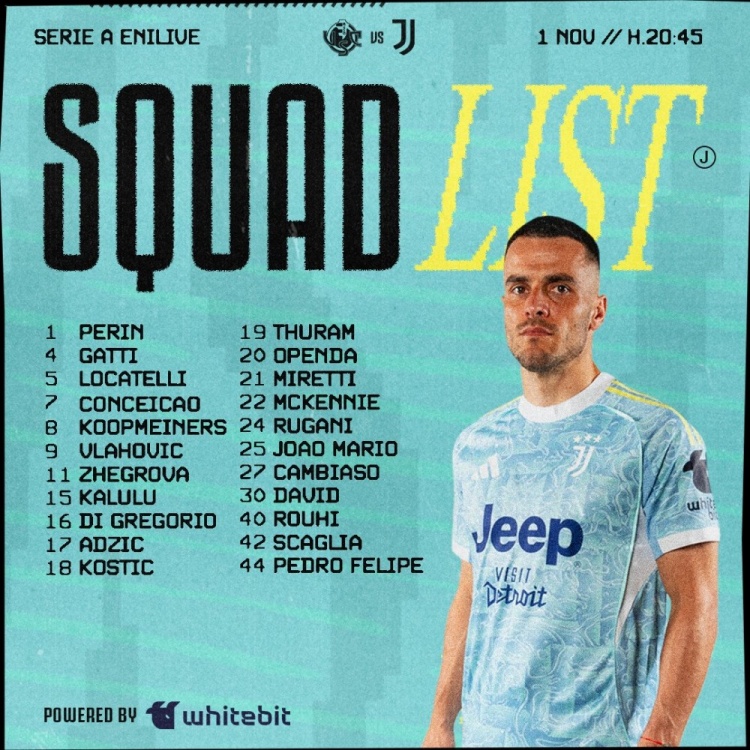 11月1日讯 北京时间周日凌晨的意甲第10轮比赛,尤文将前往客场挑战克雷莫内塞,斑马军团新帅斯帕莱蒂到时迎来自己执教球队的首秀。目前,尤文已经公布了本场比赛的大名单,DV9、伊尔迪兹入选,卡卢卢、凯夫伦-图拉姆在列,布雷默缺阵。