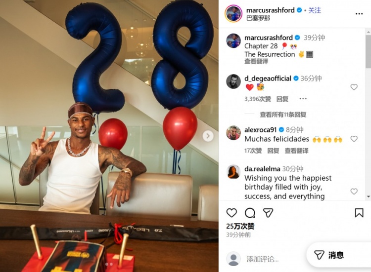 11月1日讯 10月31日是英格兰前锋拉什福德28岁生日,在社交媒体上,这名被曼联外租至巴萨的射手写道:人生第28章!重生!