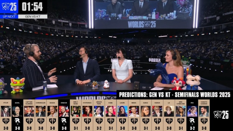 11月1日讯 S15四强赛GEN对阵KT,英文流预测:15位解说看好GEN取胜 仅三人认为KT胜利!