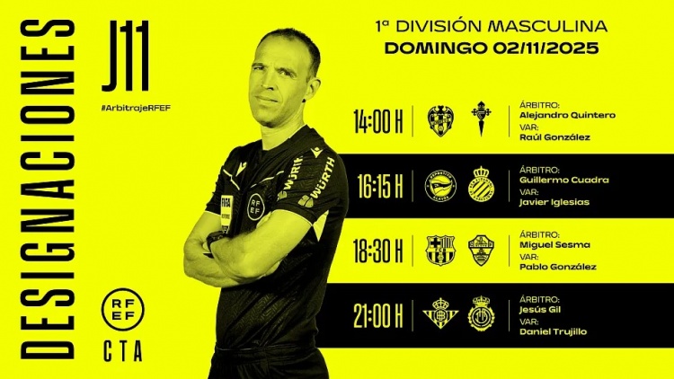 主裁判:赫苏斯-吉尔,VAR裁判:特鲁伊略。