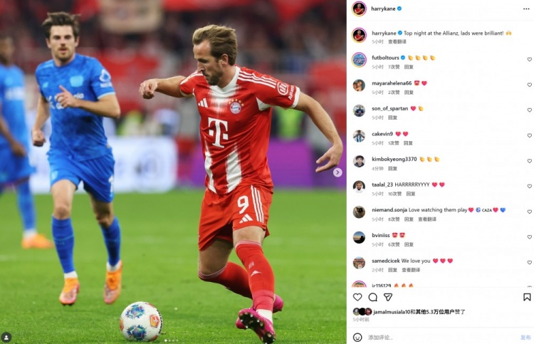 本场比赛凯恩替补登场,赛后他也在个人社媒晒出本场照片,配文写道:“安联球场的顶级表现,伙计们太出色了!”