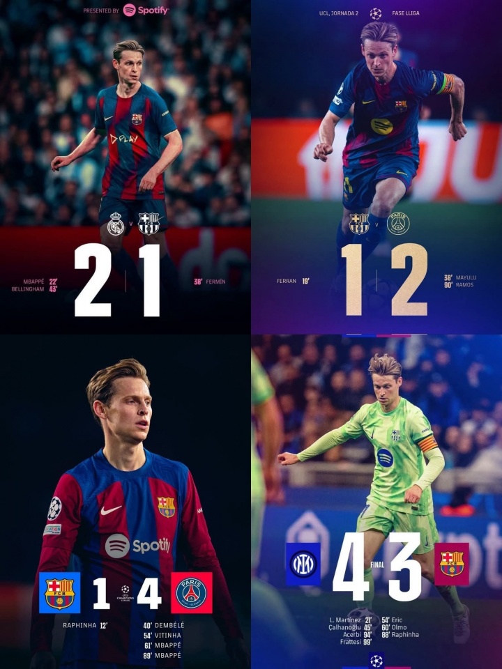 有球迷发现,每当巴萨输球,就会用德容作为战报封面