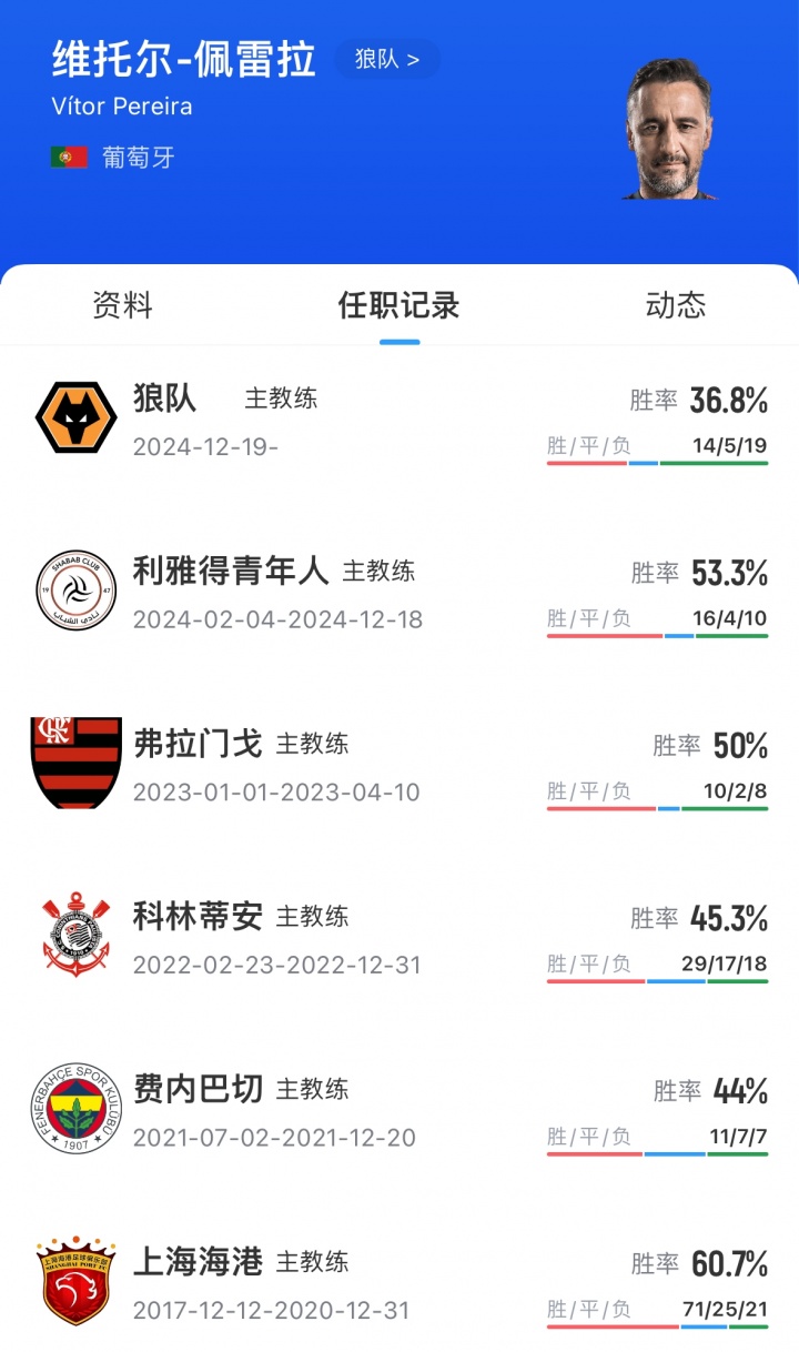 狼队官方宣布与主教练维托尔-佩雷拉解约,球队在2025/26赛季开局阶段未尝胜绩。