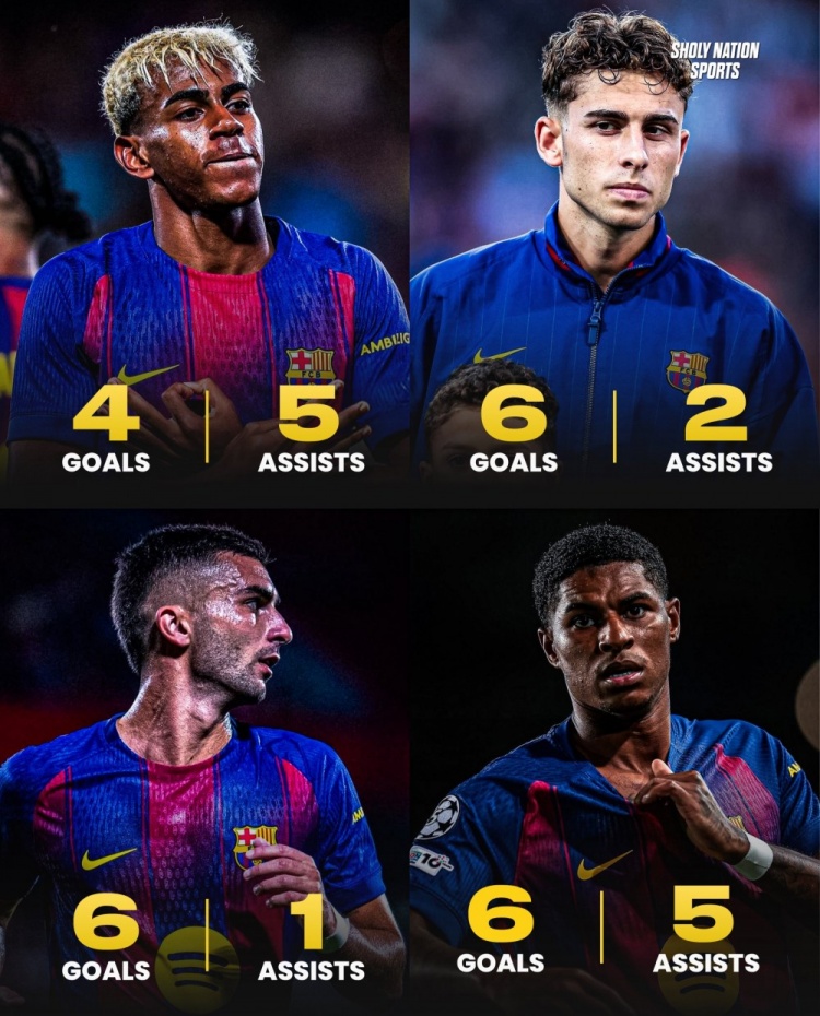 11月3日讯 西甲第11轮比赛,巴萨主场3-1击败埃尔切。媒体Sholy Nation Sports统计了巴萨部分进攻端球员本赛季的数据。