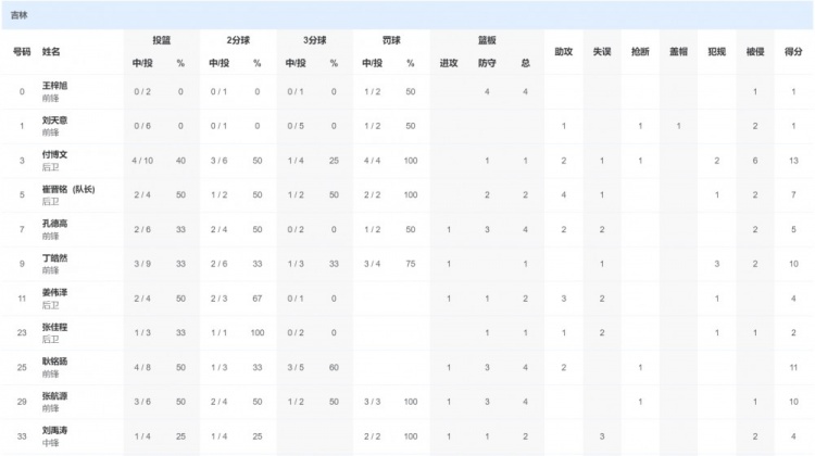 吉林全运男篮4人上双 ,得分最高的是付博文13分。