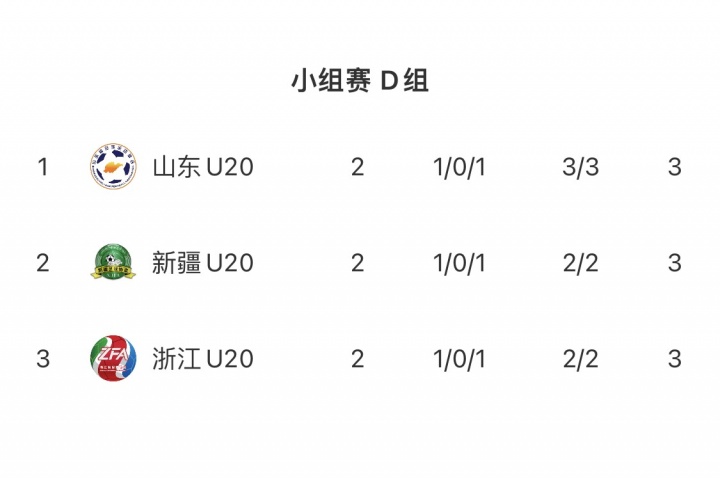 直播吧11月06日讯 全运会U20男足小组赛,D组出线3队同分的情况,最终山东凭借总进球数优势排名榜首,新疆和浙江在进球数、净胜球、红黄牌都一致的情况下,最终通过抽签决定排名。最终新疆抽到第二名,晋级八强,浙江抽到第三名,无缘出线。