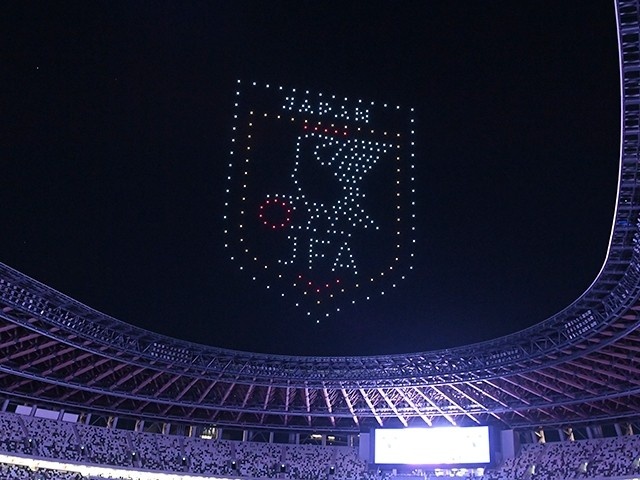 11月18日坐镇东京国立竞技场对阵玻利维亚队的比赛,500架无人机将在夜空中组成超大的日本队队徽。