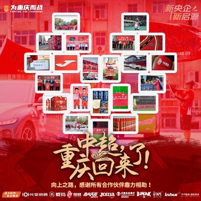 重庆铜梁龙官博配文写道:“中超,重庆回来了,感谢所有合作伙伴和第十二人,因为你们,今夜如此璀璨!重庆足球会更加绚烂!重庆,雄起!”