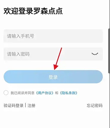 1、打开罗森点点app,在登录界面输入您的账号密码,点击”登录“按钮进入系统。