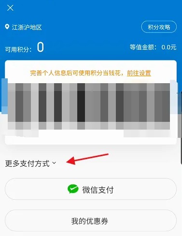 3、在会员码页面中,找到并点击”更多支付方式“这个选项,系统将显示所有可用的支付渠道。