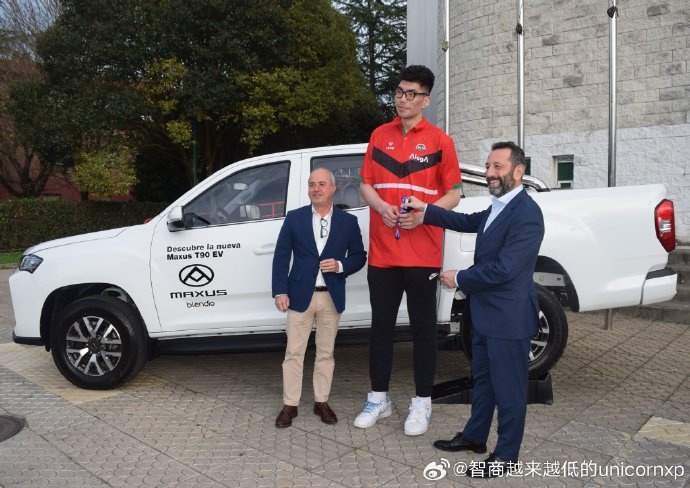 直播吧11月15日讯 据欧洲篮球及选秀专家王健报道,余嘉豪在西班牙获赠赞助商送的Maxus T90 EV。