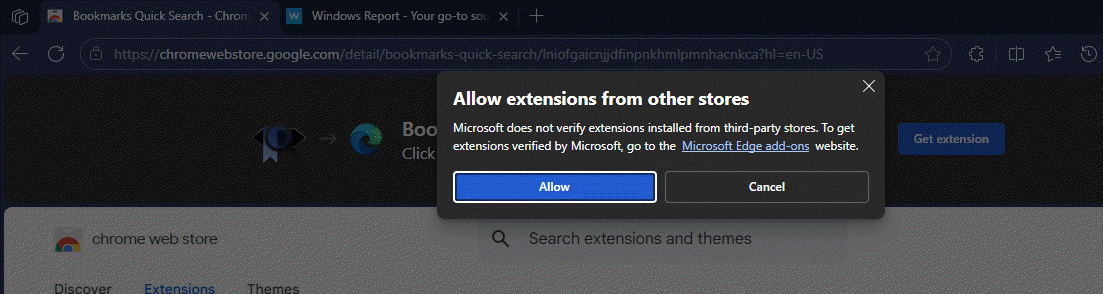 11 月 15 日消息,WindowsReport 发现微软悄悄在 Edge Canary 测试版中移除了“允许来自其他应用商店的扩展”开关。