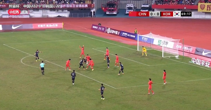 直播吧11月15日讯 U22国足vs韩国第70分钟,韩国队姜民俊在禁区内倒地,伸腿的胡荷韬迅速示意不是犯规,主裁判唐顺齐认定不是点球!