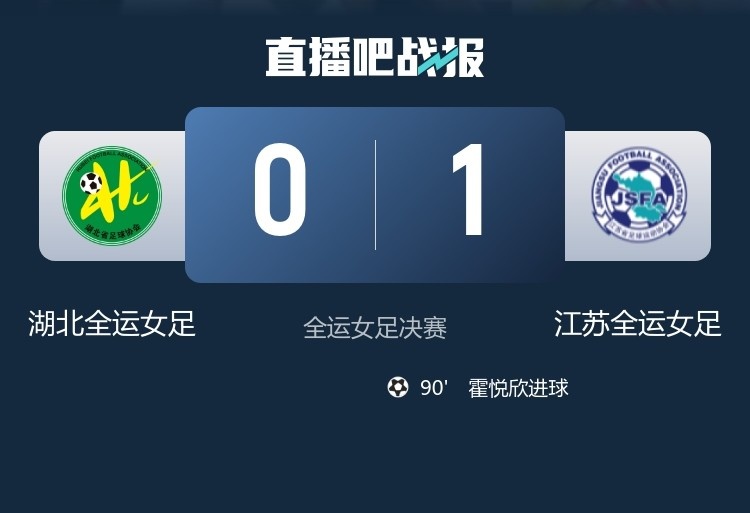 直播吧11月16日讯 全运会女足决赛,湖北女足0-1遭江苏女足绝杀,收获一枚银牌,这一成绩仍刷新了湖北女足在全运会上的最佳战绩。