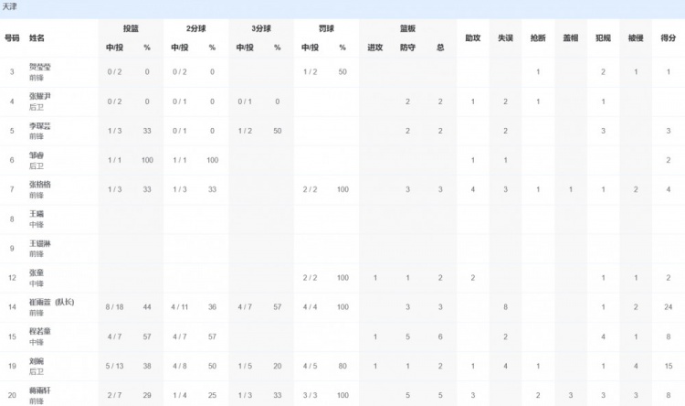 天津队方面,崔雨萱24分3篮板,刘婉15分2篮板1助攻1抢断。