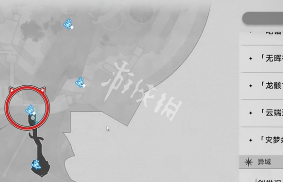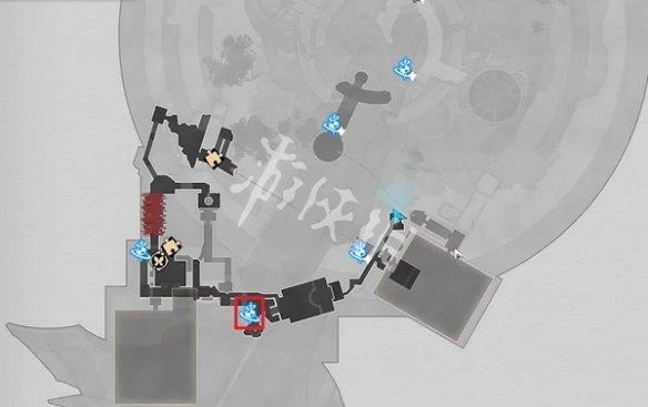 - 打开地图,点击箭头处的传送点后,传送到方框处的门里。