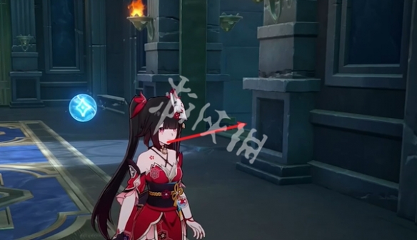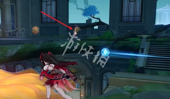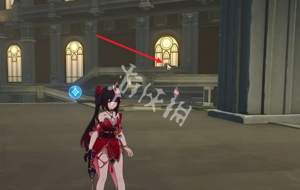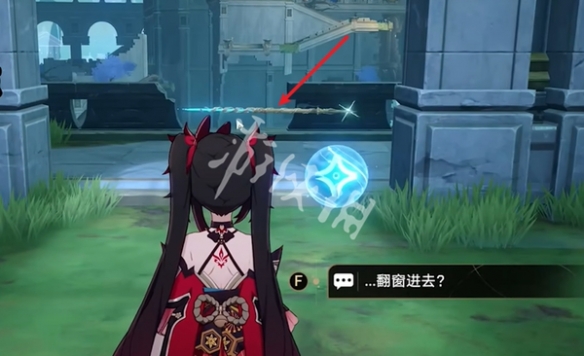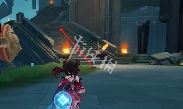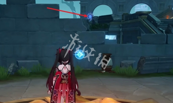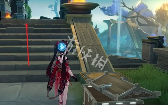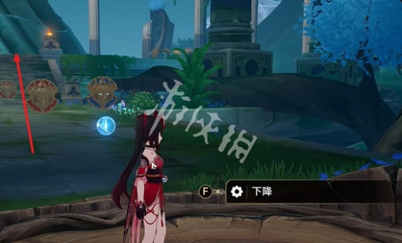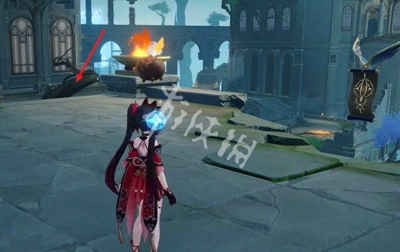- 走到图中的位置,停下,调整视角,箭头处有个宝箱。