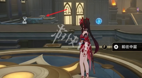 - 下楼梯后,去箭头处的楼梯,上去可以看到一个宝箱。
