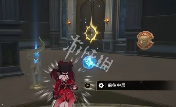 - 跟着走到图中的位置,去箭头处的方块进行交互。