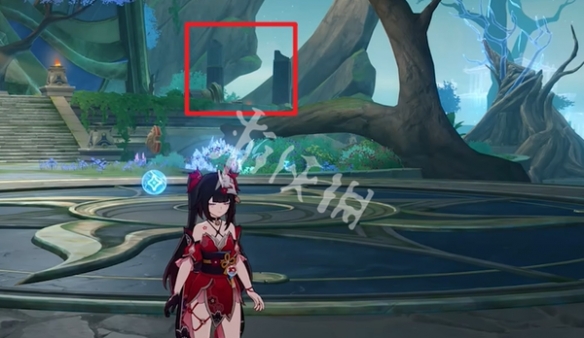 - 走到图中的位置,会看到一个预言算碑,完成即可获得宝箱。