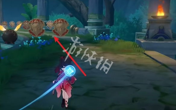 - 拿完后,打碎箭头处的盾牌,里面有个黄金替罪羊挑战,完成即可获得宝箱。
