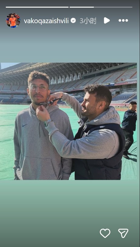 直播吧11月19日讯 泰山球员瓦科·卡扎伊什维利更新社媒,晒出他为克雷桑剪胡子的照片。