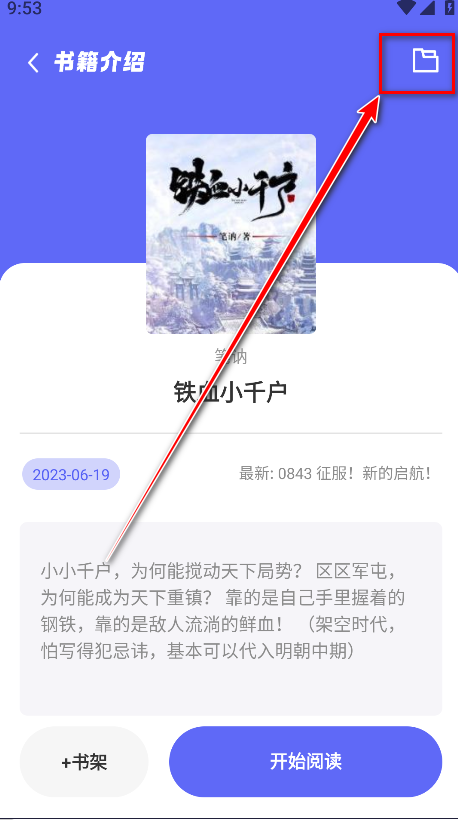 打开已安装的苍云阅读app,在书架上选择你感兴趣的小说作品。进入小说详情页后,注意观察右上角的导航区域,这里隐藏着重要的功能入口。