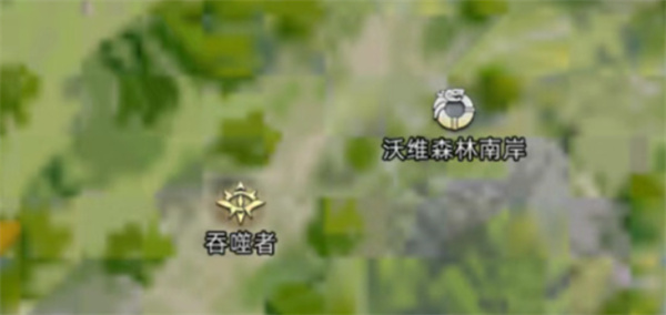 吞噬者的固定刷新点位于沃维森林南岸区域,具体坐标在传送锚点西南方向约55米处。这个位置相对隐蔽,建议提前做好地形侦查。