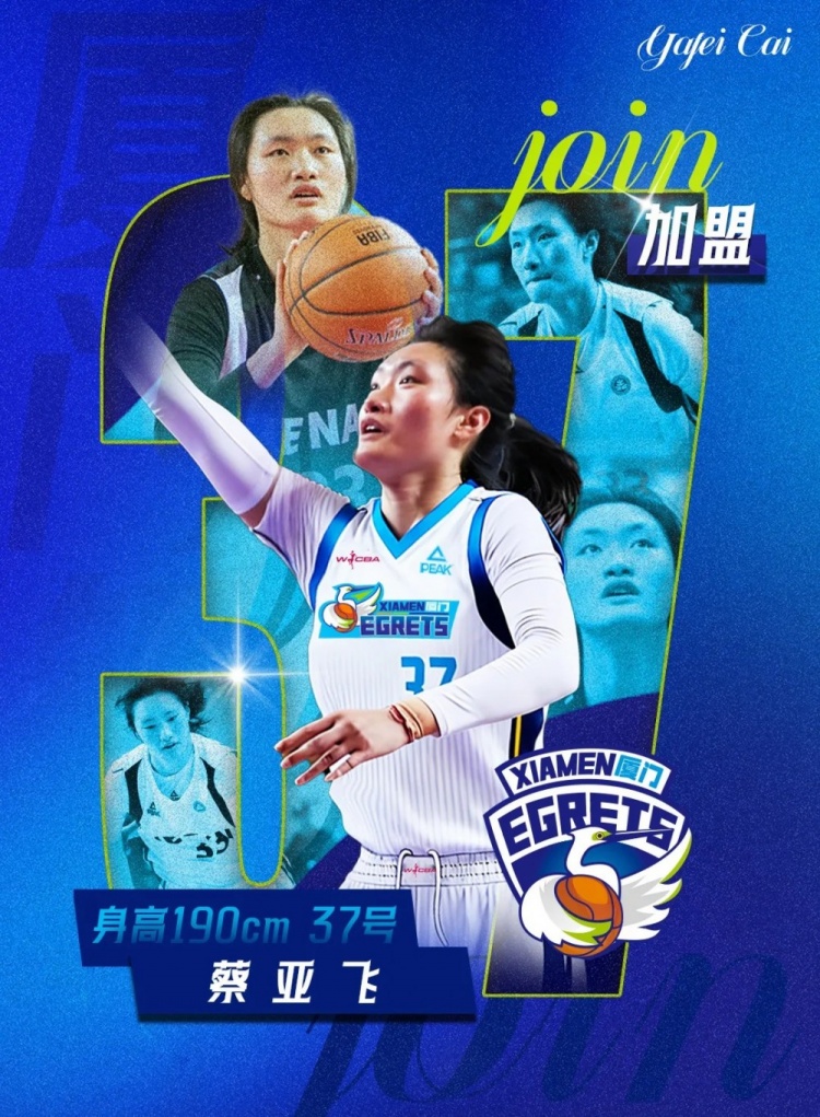 蔡亚飞出生于2001年,身高190cm,司职内线。她已在WCBA联赛征战多个赛季,曾先后效力于河南、陕西,积累了丰富的比赛经验。在23-24赛季,她场均能贡献8.4分和7.4篮板,展现了扎实的篮下技术和可靠的篮板能力。她的加盟,将进一步充实球队的内线轮转深度,为球队在攻防两端提供更多可能。欢迎蔡亚飞加入厦门白鹭女篮大家庭,期待她在新赛季的赛场上全力以赴,守护禁区,与球队一同成长奋进!