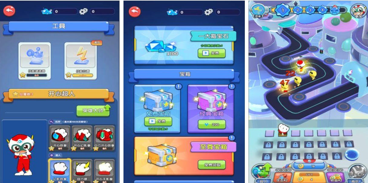 这是一款主打竖屏操作的动作闯关手游,依托开心超人IP构建出立体化的虚拟世界。地图设计完整且层次丰富,配合多样化的关卡挑战与娱乐模式,增强游戏可玩性。原创剧情让玩家仿佛置身于真实的动漫场景之中。宝箱系统支持随机奖励获取,助力角色成长。快节奏的动作元素带来紧张刺激的战斗体验。