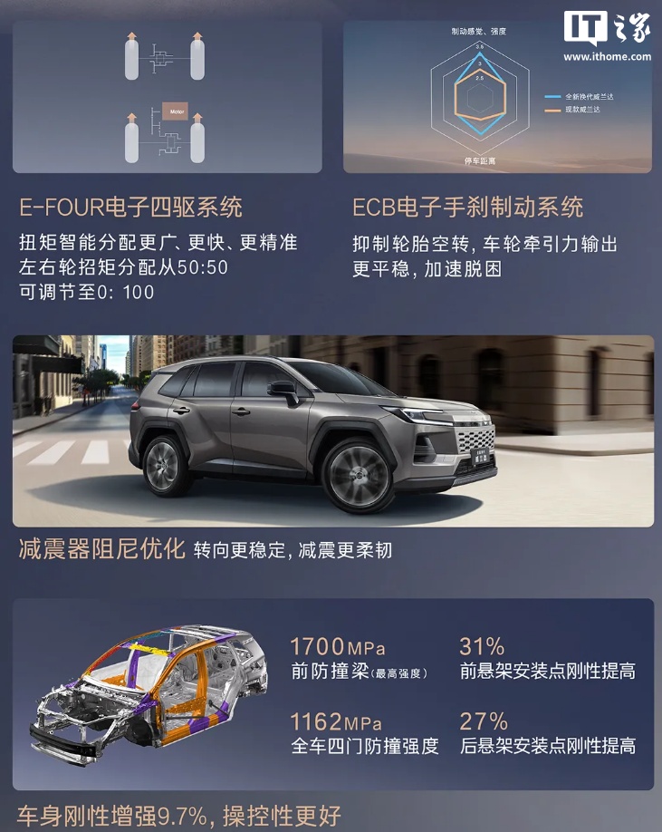 全新换代威兰达支持多项驾驶辅助功能,可选 E-FOUR 电子四驱系统。