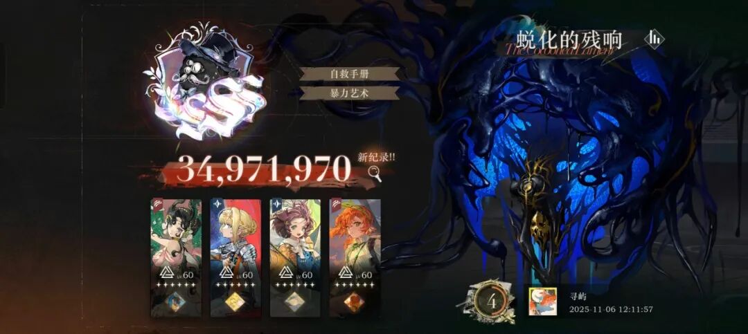 告死鸟队:(不建议自动挂机)告死鸟+卡戎+纸信圈儿/乌尔里希+库珀花环/图图石子