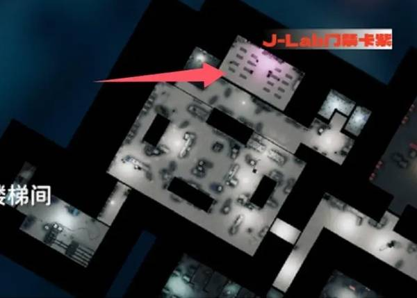 很好找我们进实验室的入口,对直往前走就能找到,因为是放映室用的投影,切大地图看到是黑的。这个地方有游戏卡带,有J-Lab箱是个不错的物资点。