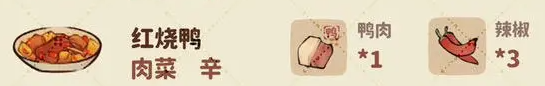 《桃源深处有人家》游戏中可以做许多美味佳肴,但是每一道菜,都有不同的配方搭配才能制作出来。其中红烧鸭是游戏中一道四级菜谱,了解一下它的配方吧!
