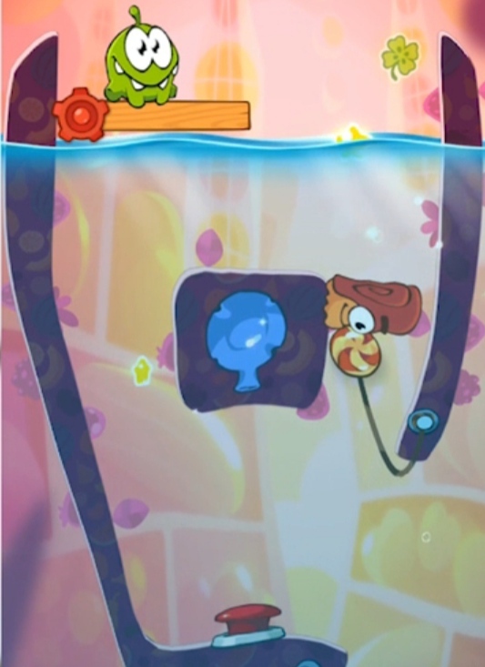 1、点击蜗牛,并割断下方的绳子,让糖果吃到第一颗星星。
