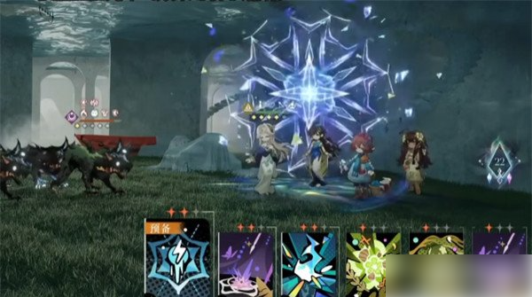 每个回合开始时,她还将根据当前“流溢”颜色抽取一张对应的“各色流溢”特殊咒语。例如选择紫色流溢时,可能获得“预见”效果,降低释放“劫数难逃”所需的“余辉”门槛,从而提高大招的触发频率。若队伍中存在多个相同颜色的“流溢”配置,则抽中对应咒语的概率也会随之上升。