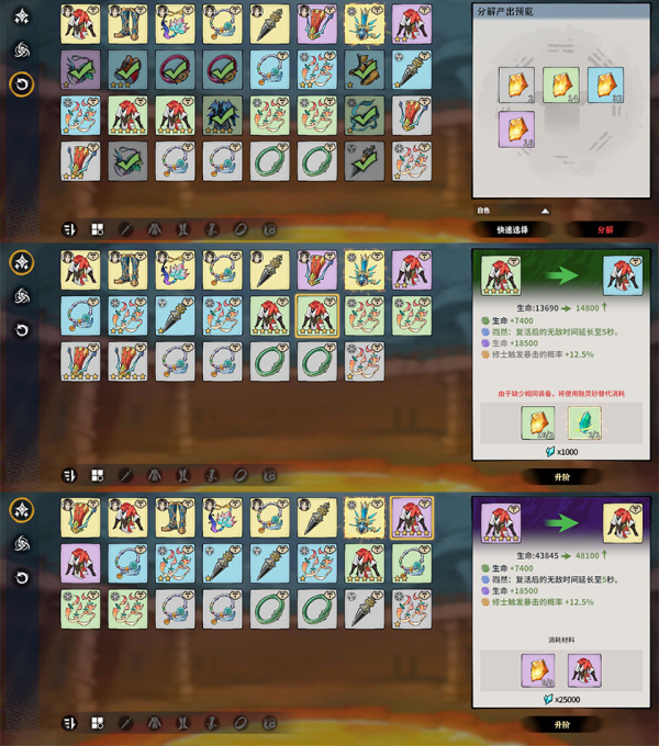 升星石如果通过分解其他装备以及合成,都不够用的话。
