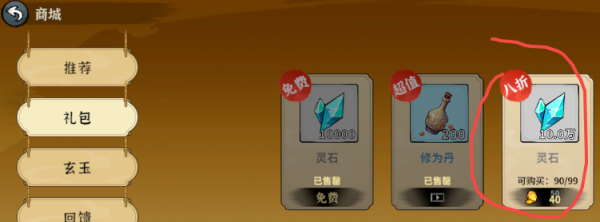 我在商店主要买灵气,不靠扫荡关卡,因为体力用来推关卡更重要。