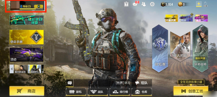 首先就是找到KD值的位置,进入游戏之后,看到主界面,在个人资料的位置,我们可以看到一些个人数据。