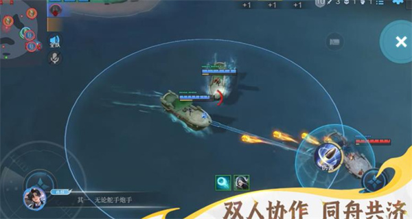 需组队双人驾驶战船,一人负责掌舵控制方向,另一人负责攻击操作,需密切协作。