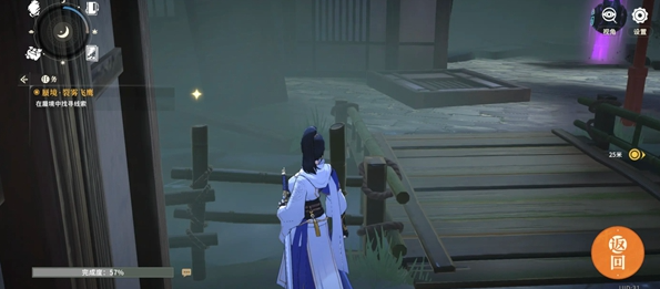 2、支线:顺着河往里面走与小女孩对话触发,帮找琴谱,任务物品发光在这雾天很显眼。