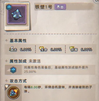 僚机搭配:携带2个铁壁一号,其每8秒自动消除周围敌方子弹,包括boss释放的云朵,建议优先集齐并升级。