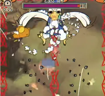 场景出现烟雾时,先向底部移动,再根据局势稍向上调整。鸭子敌人出现前,提前观察其下落方向,向左上方或右上方移动躲避。