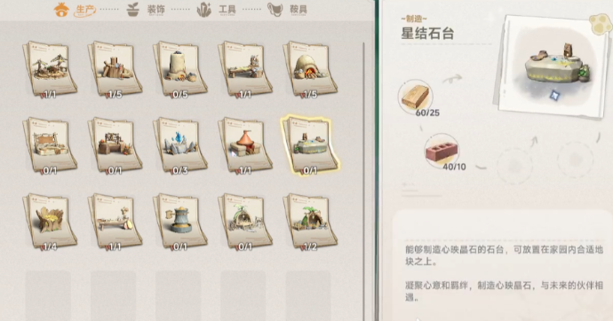 1.先在家园造工作台,再造星结石台,就能做白、绿、蓝三种低品质卡。做蓝卡要粗糙纸片:得先造纺车,靠纺织获取;基础材料(碎片):去大世界探索,或打日常副本拿;首测里星结石台是满级的,暂时造不了紫、橙卡,高级卡得靠其他办法。