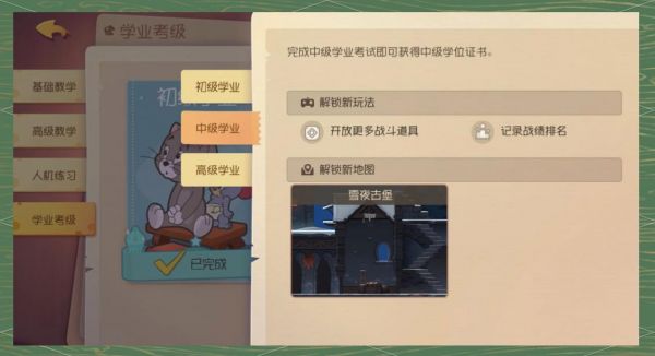 初级学业是入门挑战,相对较为简单。只需跟随新手引导,轻松完成即可获得初级学业证书,开启你的游戏旅程。